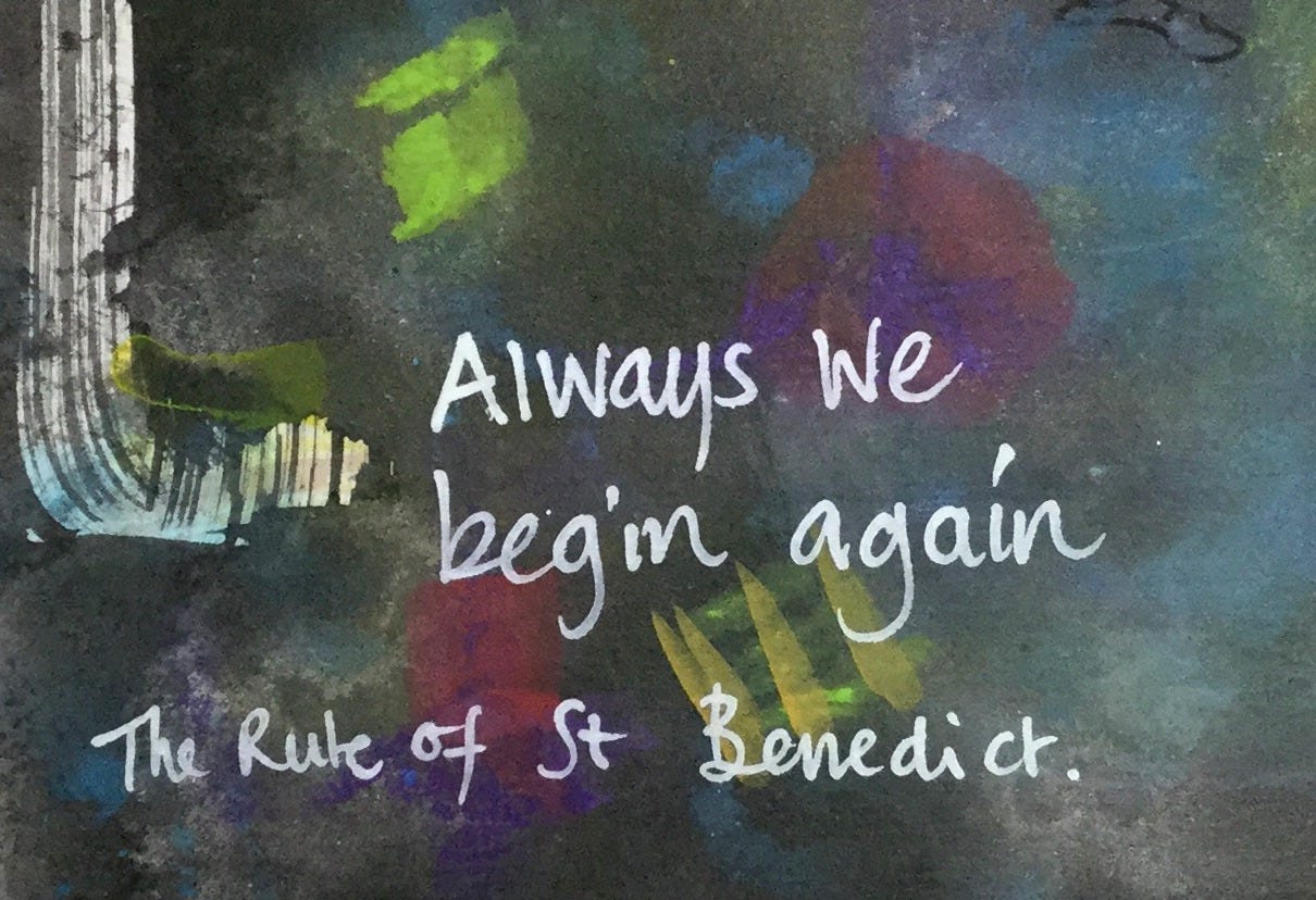 These words of St Benedict are among the most encouraging I know. I often set off with enthusiasm and falter after a while: distracted by yet another inviting path, waylaid by an obstacle I don’t have the energy to find my way round, sometimes even forgetting quite where I was going in the first place.